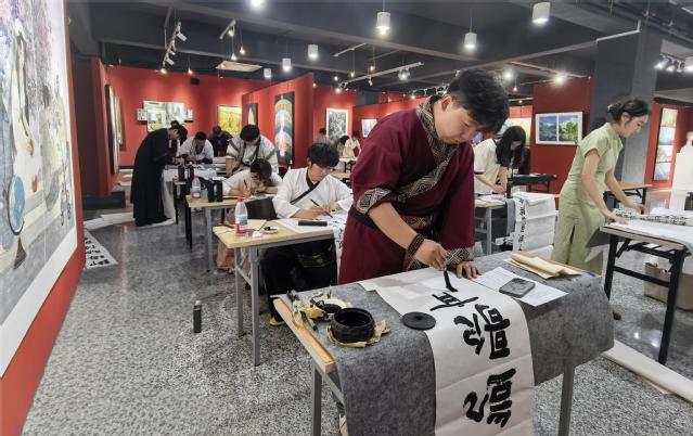 大赛设软笔书法、硬笔书法及篆刻三大类别,五个赛区,专业组与业余组同步竞技。软笔赛场翰墨飘香,参赛者挥毫泼墨,楷书端庄、行书飘逸、隶书古朴相映成趣;硬笔区域沙沙作响,工整的《少年中国说》书写与创意诗词排版各具特色;篆刻台前叮当清脆,选手们以刀为笔,在方寸印石上镌刻“山河光复”“积素凝华”等内容,在规范中尽显个人艺术风采。