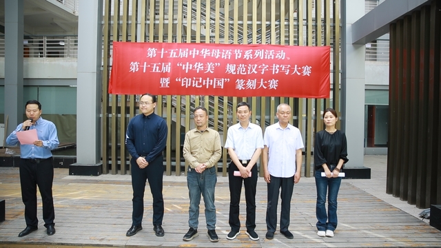 为加大国家通用语言文字推广力度,传承弘扬中华优秀传统文化,深化教育部师范教育协同提质计划合作内涵,江苏师范大学与商丘师范学院于2025年4月至6月联合举办第十五届中华母语节。5月7日下午,母语节首场活动——第十五届“中华美”规范汉字书写大赛暨“印记中国”篆刻大赛在我校美术学院中庭拉开帷幕。江苏师范大学美术学院院长惠剑、党委副书记徐彬、教学副院长兰芳,商丘师范学院美术学院院长李林、党委副书记付松山,以及两校师生代表近300人参加了开幕式。江苏师范大学教务处副处长蔡浩刚主持开幕式。活动以“典耀中华,赓续文脉”为主题,展现了新时代青年对母语文化的热爱与匠心。