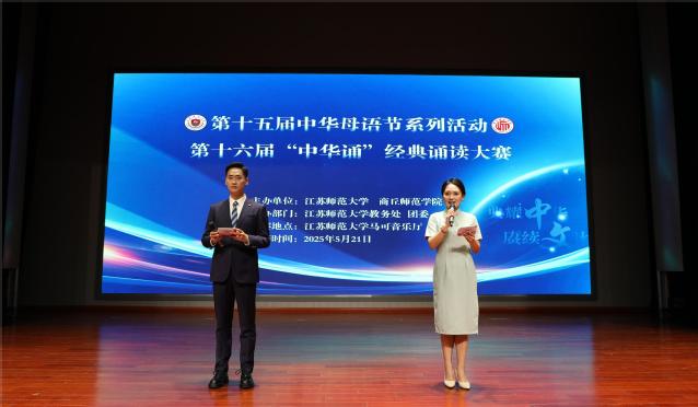 5月21日下午,我校与商丘师范学院联合举办的第十五届中华母语节系列活动——第十六届“中华诵”经典诵读大赛决赛,在马可音乐厅隆重举行。商丘师范学院校团委副书记徐航、江苏师范大学教务处副处长蔡浩刚、校团委副书记朱悦莅临活动现场。我校近300名大学生现场观摩。