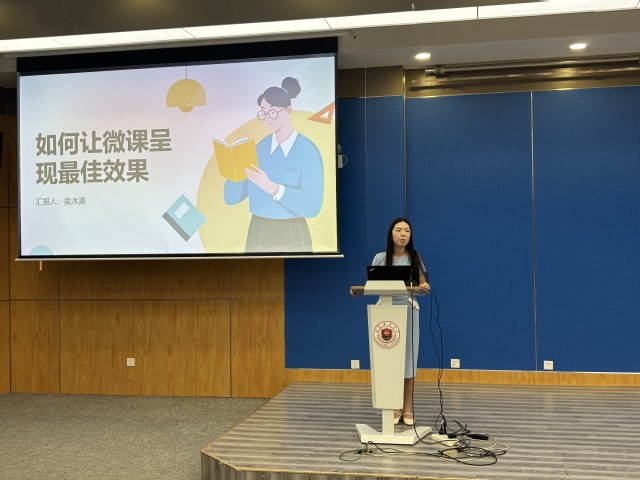 在经验分享环节,教务处邀请2024年江苏省微课教学比赛一等奖获得者分享宝贵经验。潘秋实老师就“微课竞赛要求分析及制作策略”,深入解析微课设计的核心要素,通过优秀案例演示,重在激发教师的创新思维;吴沐潇老师从选题聚焦、视听语言、互动设计等角度,分享“如何让微课呈现最佳效果”的实用技巧,讲述了在选题过程中结合学科特点和实际教学需求的重要性。