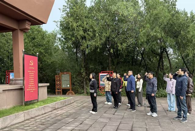 在马陵山红色教育基地,党员们参观了宿北大战前沿指挥所旧址——三仙洞。通过洞内复刻的作战遗迹,感受老一辈革命家在艰苦环境中的战略智慧。在宿北大战纪念碑亭前,全体党员重温入党誓词。随后前往淮海战役窑湾战斗陈列馆,“十人桥”铜雕所展现的英雄壮举,深深感染了每一位党员。