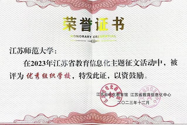 近日,江苏省教育厅电化教育馆公布了2023年江苏省教育信息化主题征文活动获奖名单。活动开始以来,我校认真组织,各学科教师积极申报,经省教育厅遴选评审,我校被授予“优秀组织学校”。